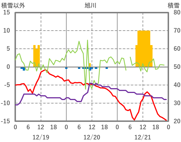 | 日 | 時 | 気温 | 降水 | 風向/風速 | 日照 | 積雪 | 降雪 |
