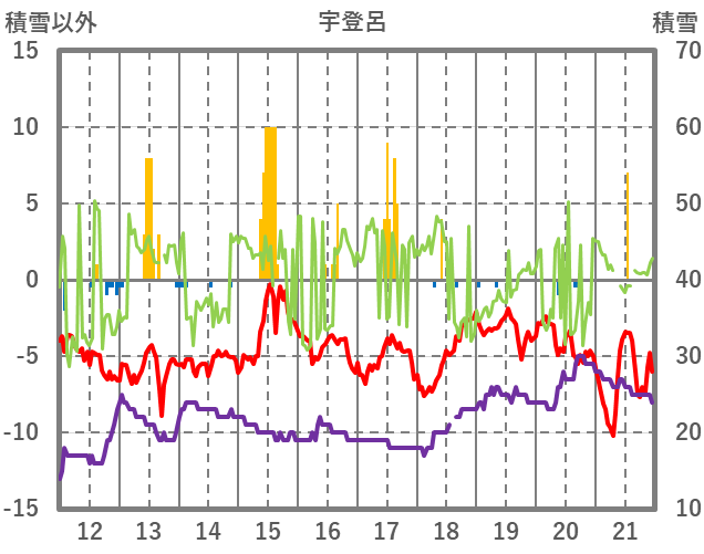 | 日 | 時 | 気温 | 降水 | 風向/風速 | 日照 | 積雪 | 降雪 |
