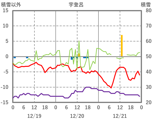 | 日 | 時 | 気温 | 降水 | 風向/風速 | 日照 | 積雪 | 降雪 |
