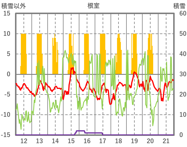 | 日 | 時 | 気温 | 降水 | 風向/風速 | 日照 | 積雪 | 降雪 |