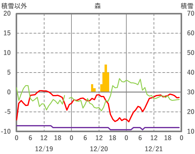 | 日 | 時 | 気温 | 降水 | 風向/風速 | 日照 | 積雪 | 降雪 |