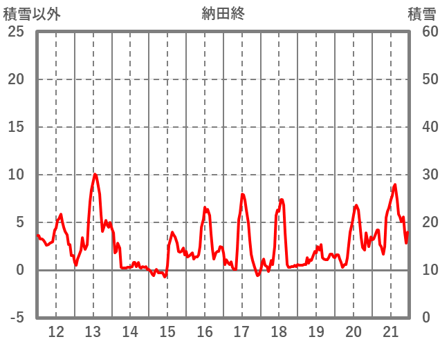 | 日 | 時 | 気温 | 降水 | 風向/風速 | 日照 | 積雪 | 降雪 |