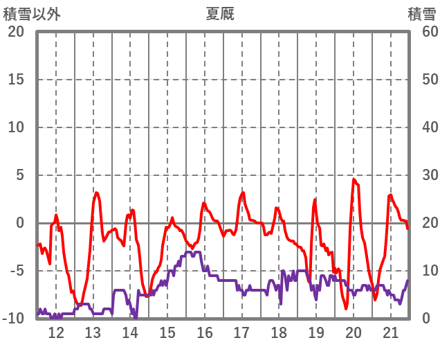 | 日 | 時 | 気温 | 降水 | 風向/風速 | 日照 | 積雪 | 降雪 |