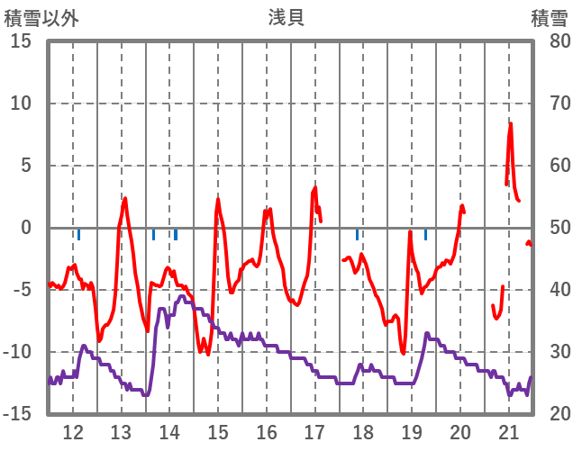 | 日 | 時 | 気温 | 降水 | 風向/風速 | 日照 | 積雪 | 降雪 |
