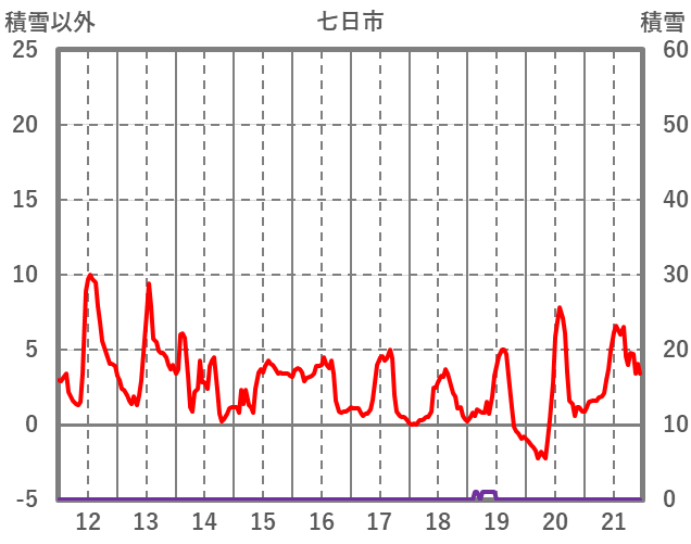 | 日 | 時 | 気温 | 降水 | 風向/風速 | 日照 | 積雪 | 降雪 |