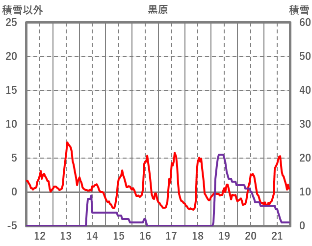 | 日 | 時 | 気温 | 降水 | 風向/風速 | 日照 | 積雪 | 降雪 |