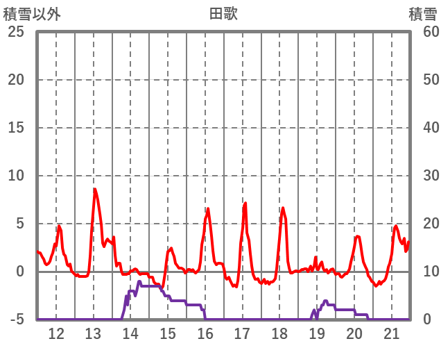 | 日 | 時 | 気温 | 降水 | 風向/風速 | 日照 | 積雪 | 降雪 |