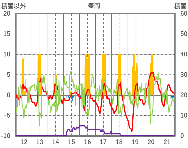 | 日 | 時 | 気温 | 降水 | 風向/風速 | 日照 | 積雪 | 降雪 |