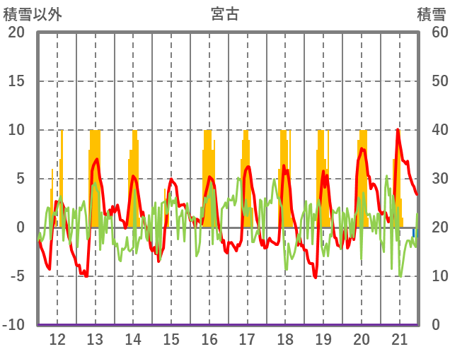 | 日 | 時 | 気温 | 降水 | 風向/風速 | 日照 | 積雪 | 降雪 |