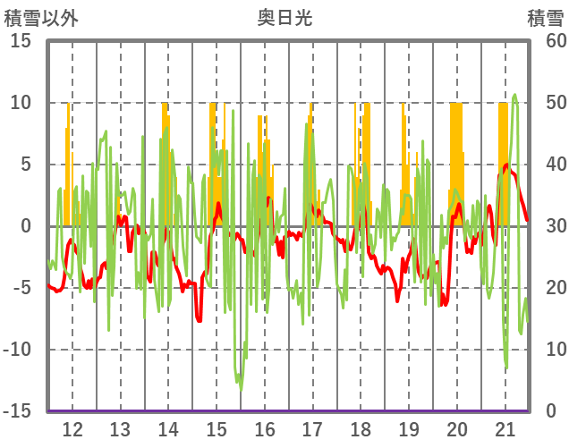 | 日 | 時 | 気温 | 降水 | 風向/風速 | 日照 | 積雪 | 降雪 |