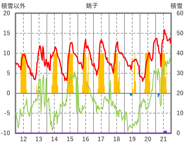| 日 | 時 | 気温 | 降水 | 風向/風速 | 日照 | 積雪 | 降雪 |