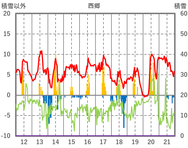 | 日 | 時 | 気温 | 降水 | 風向/風速 | 日照 | 積雪 | 降雪 |