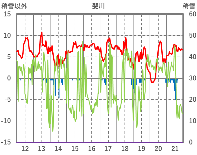 | 日 | 時 | 気温 | 降水 | 風向/風速 | 日照 | 積雪 | 降雪 |