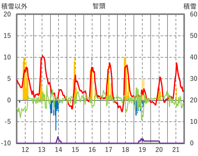 | 日 | 時 | 気温 | 降水 | 風向/風速 | 日照 | 積雪 | 降雪 |