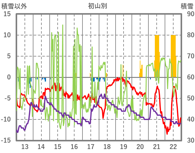 | 日 | 時 | 気温 | 降水 | 風向/風速 | 日照 | 積雪 | 降雪 |