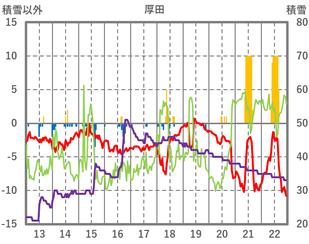| 日 | 時 | 気温 | 降水 | 風向/風速 | 日照 | 積雪 | 降雪 |