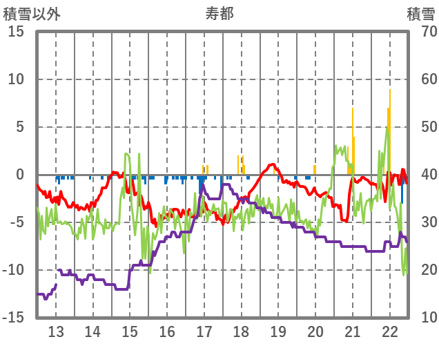 | 日 | 時 | 気温 | 降水 | 風向/風速 | 日照 | 積雪 | 降雪 |