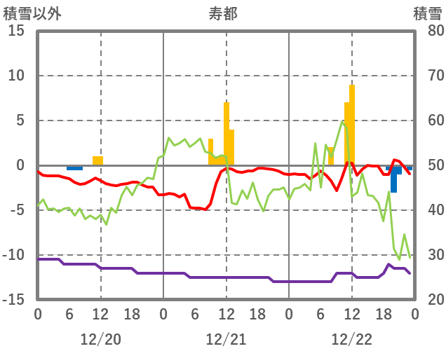 | 日 | 時 | 気温 | 降水 | 風向/風速 | 日照 | 積雪 | 降雪 |