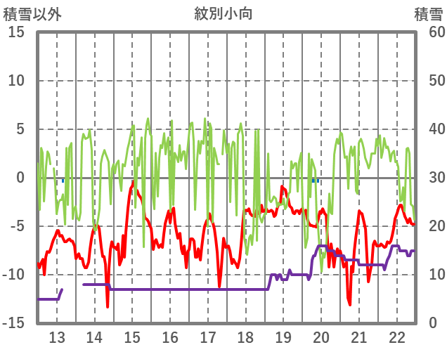 | 日 | 時 | 気温 | 降水 | 風向/風速 | 日照 | 積雪 | 降雪 |