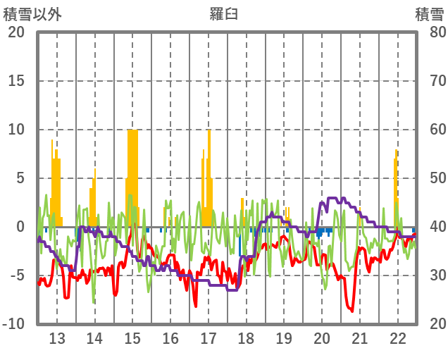 | 日 | 時 | 気温 | 降水 | 風向/風速 | 日照 | 積雪 | 降雪 |