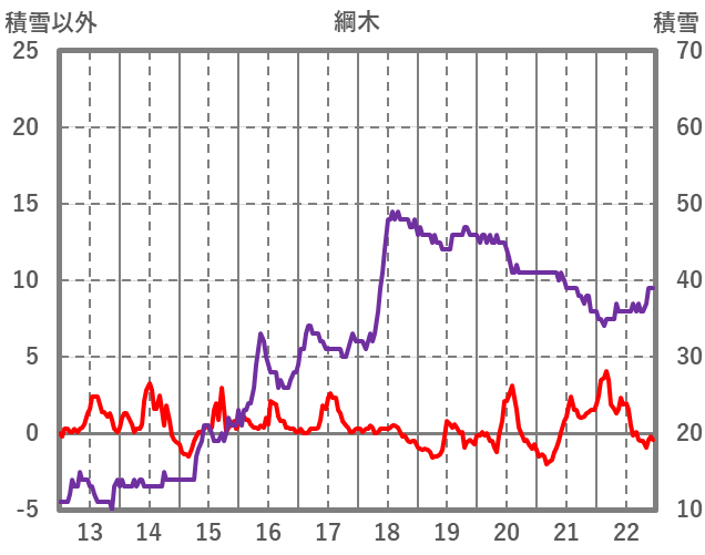 | 日 | 時 | 気温 | 降水 | 風向/風速 | 日照 | 積雪 | 降雪 |