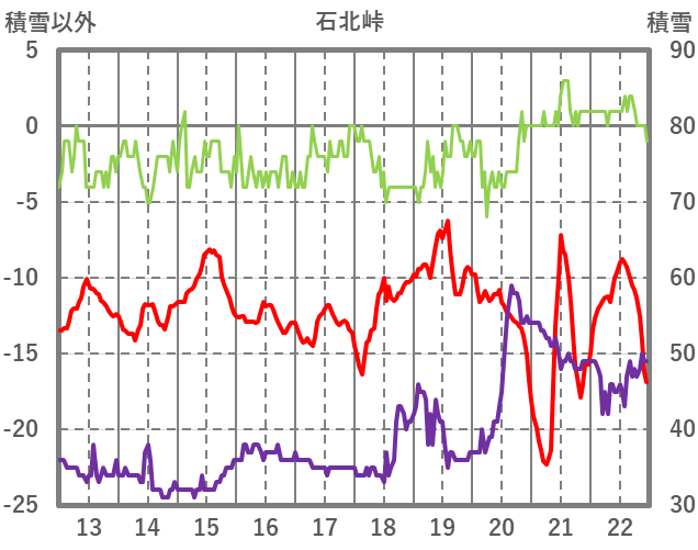 | 日 | 時 | 気温 | 降水 | 風向/風速 | 日照 | 積雪 | 降雪 |