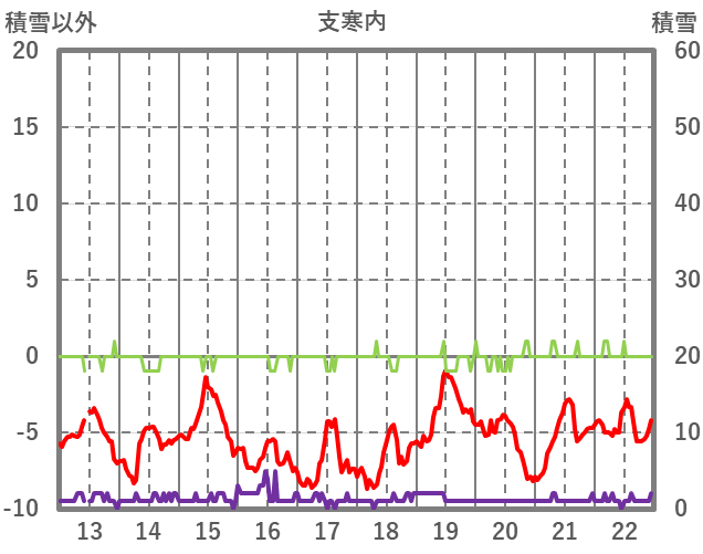 | 日 | 時 | 気温 | 降水 | 風向/風速 | 日照 | 積雪 | 降雪 |