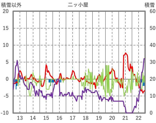 | 日 | 時 | 気温 | 降水 | 風向/風速 | 日照 | 積雪 | 降雪 |