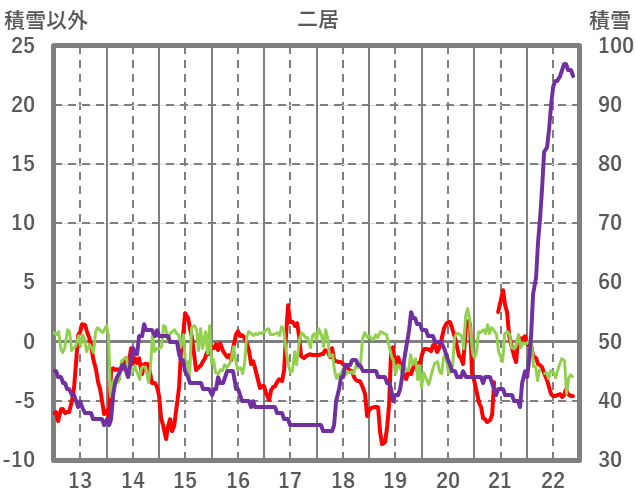 | 日 | 時 | 気温 | 降水 | 風向/風速 | 日照 | 積雪 | 降雪 |
