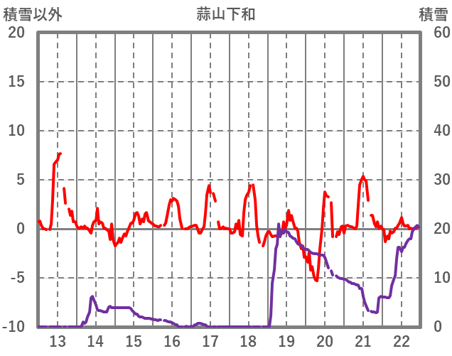 | 日 | 時 | 気温 | 降水 | 風向/風速 | 日照 | 積雪 | 降雪 |