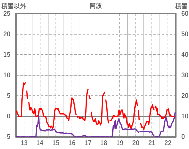| 日 | 時 | 気温 | 降水 | 風向/風速 | 日照 | 積雪 | 降雪 |