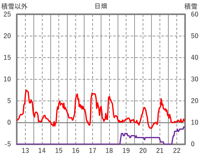 | 日 | 時 | 気温 | 降水 | 風向/風速 | 日照 | 積雪 | 降雪 |