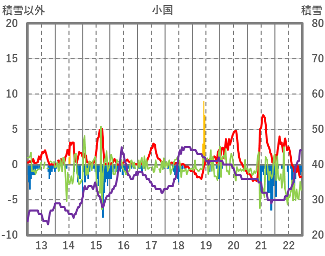 | 日 | 時 | 気温 | 降水 | 風向/風速 | 日照 | 積雪 | 降雪 |