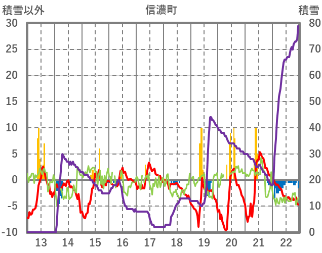 | 日 | 時 | 気温 | 降水 | 風向/風速 | 日照 | 積雪 | 降雪 |