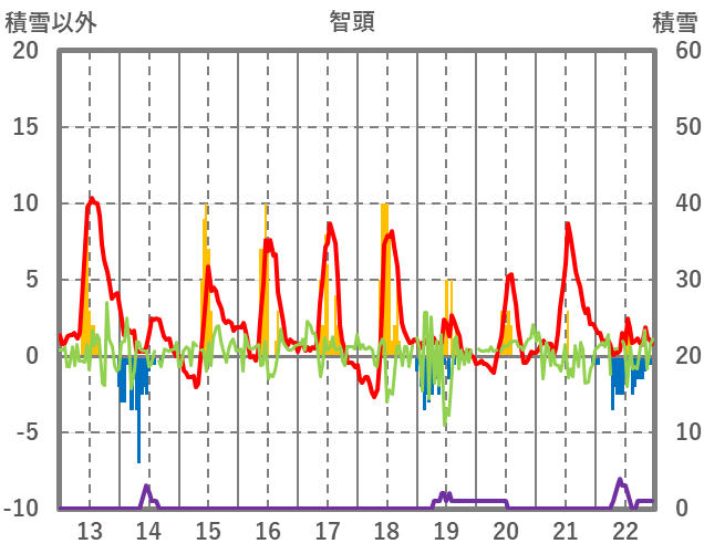 | 日 | 時 | 気温 | 降水 | 風向/風速 | 日照 | 積雪 | 降雪 |