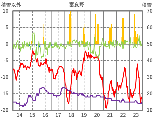 | 日 | 時 | 気温 | 降水 | 風向/風速 | 日照 | 積雪 | 降雪 |