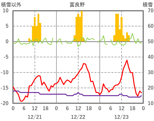 | 日 | 時 | 気温 | 降水 | 風向/風速 | 日照 | 積雪 | 降雪 |