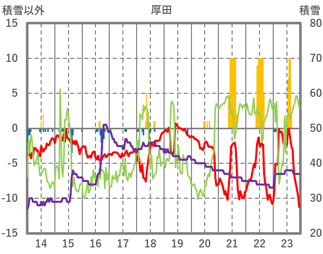 | 日 | 時 | 気温 | 降水 | 風向/風速 | 日照 | 積雪 | 降雪 |