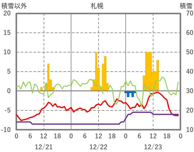 | 日 | 時 | 気温 | 降水 | 風向/風速 | 日照 | 積雪 | 降雪 |