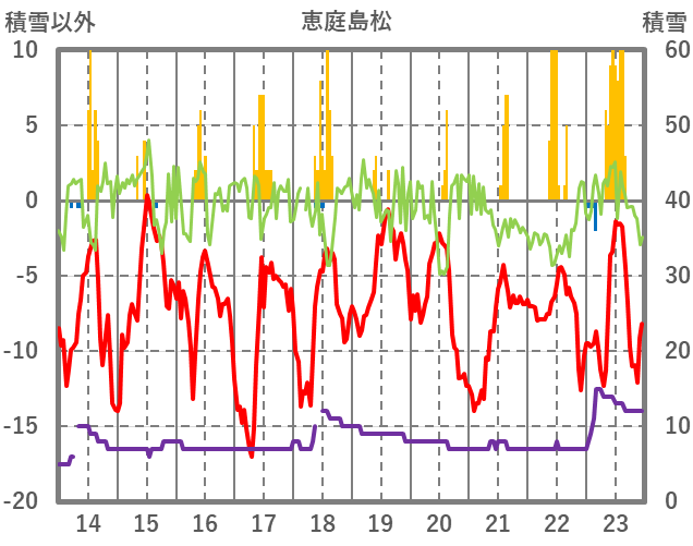 | 日 | 時 | 気温 | 降水 | 風向/風速 | 日照 | 積雪 | 降雪 |