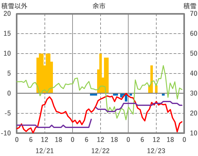 | 日 | 時 | 気温 | 降水 | 風向/風速 | 日照 | 積雪 | 降雪 |