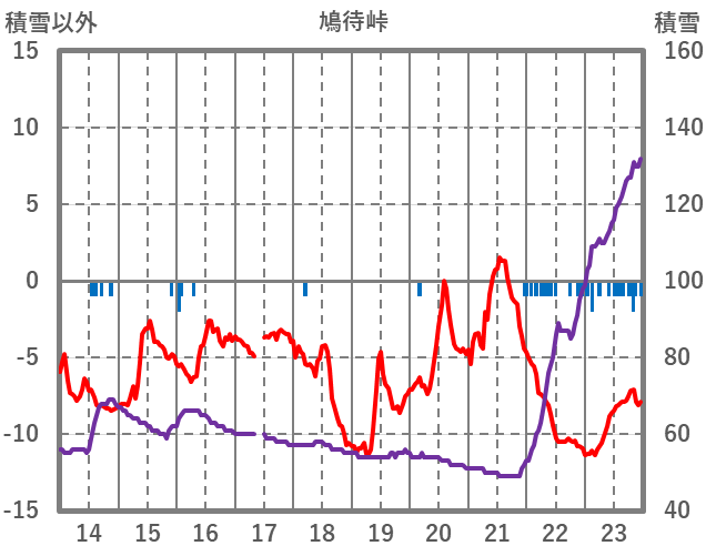 | 日 | 時 | 気温 | 降水 | 風向/風速 | 日照 | 積雪 | 降雪 |