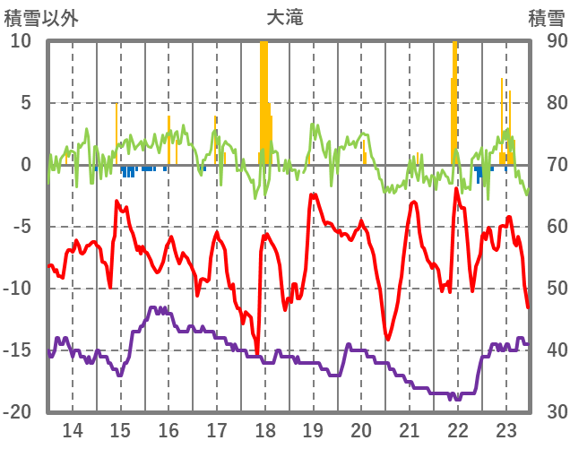 | 日 | 時 | 気温 | 降水 | 風向/風速 | 日照 | 積雪 | 降雪 |