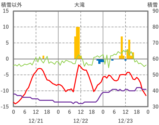 | 日 | 時 | 気温 | 降水 | 風向/風速 | 日照 | 積雪 | 降雪 |