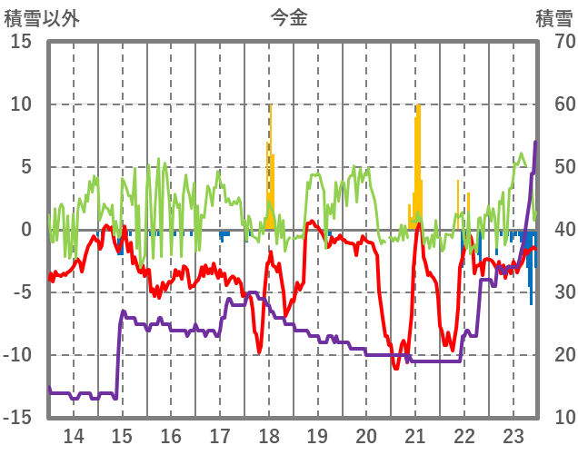 | 日 | 時 | 気温 | 降水 | 風向/風速 | 日照 | 積雪 | 降雪 |