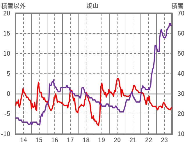 | 日 | 時 | 気温 | 降水 | 風向/風速 | 日照 | 積雪 | 降雪 |