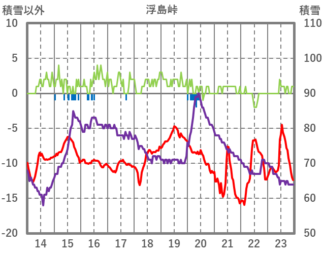 | 日 | 時 | 気温 | 降水 | 風向/風速 | 日照 | 積雪 | 降雪 |