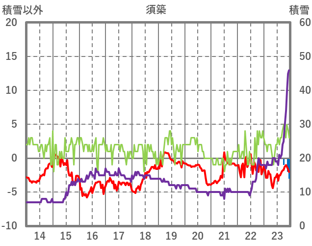 | 日 | 時 | 気温 | 降水 | 風向/風速 | 日照 | 積雪 | 降雪 |