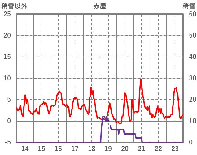 | 日 | 時 | 気温 | 降水 | 風向/風速 | 日照 | 積雪 | 降雪 |