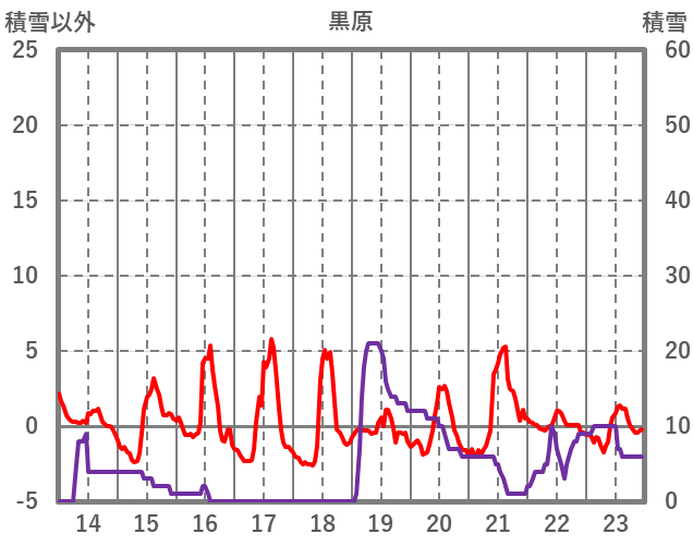 | 日 | 時 | 気温 | 降水 | 風向/風速 | 日照 | 積雪 | 降雪 |